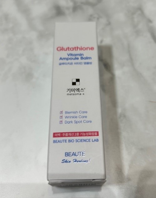 The Beaute Glutathione Vitamin Ampoule Balm is a compact, on-the-go skincare product designed to brighten and nourish the skin by combining glutathione and vitamins to reduce dullness, improve skin tone, and provide a radiant glow. It is suitable for targeted application on areas needing brightening or nourishment, offering a healthy, vitalized appearance with regular use.