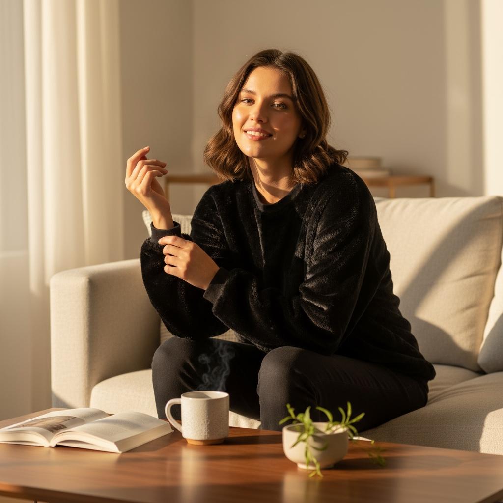 Indulge in the ultimate sensation of cozy luxury with our Cloud-Soft Plush Knit Sweater! This isn’t just knitwear; it’s a velvety dream wrapped in an effortlessly chic silhouette, designed to make every moment feel like a retreat. Imagine the incomparable softness of the plush, deep black knit, offering a soothing warmth perfect for quiet evenings or casual weekend outings. The rich, timeless black hue ensures unmatched versatility and instantly grants an air of understated sophistication to any casual look.