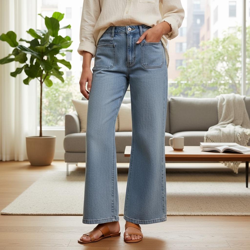 Introducing The “Iconic ’70s Flair Wide-Leg Denim,” a nostalgic yet utterly modern pair of jeans designed to celebrate your free spirit and command attention with every step. These aren’t just jeans; they’re a statement, a nod to an era of iconic style, and your ticket to unbeatable comfort and undeniable flair.