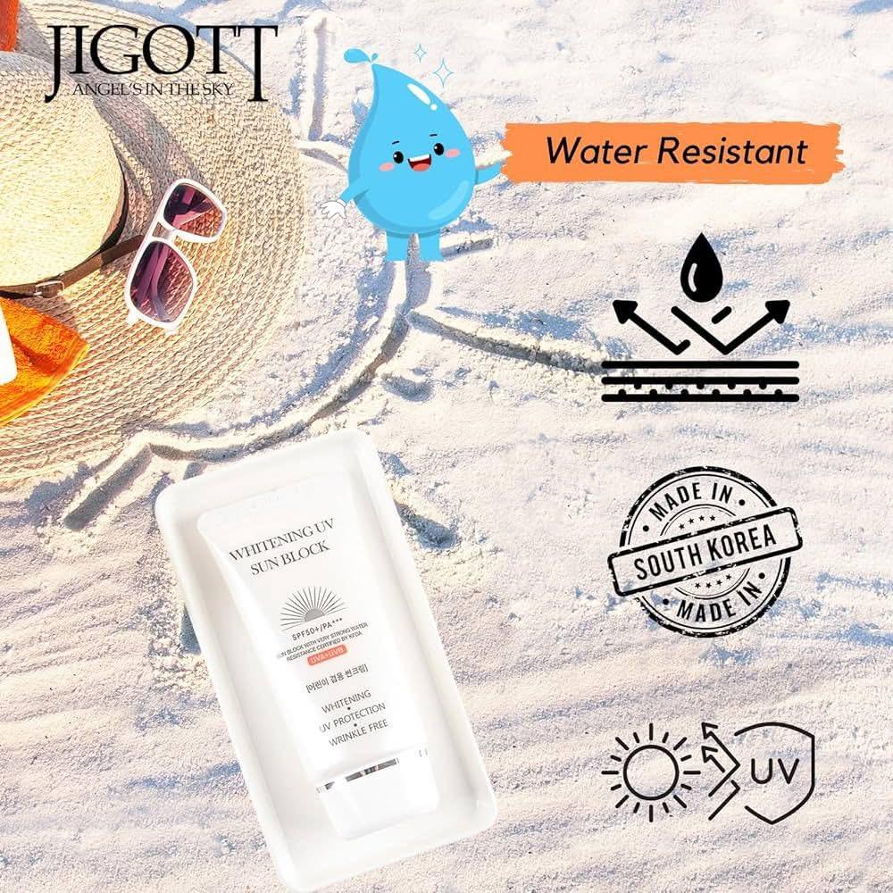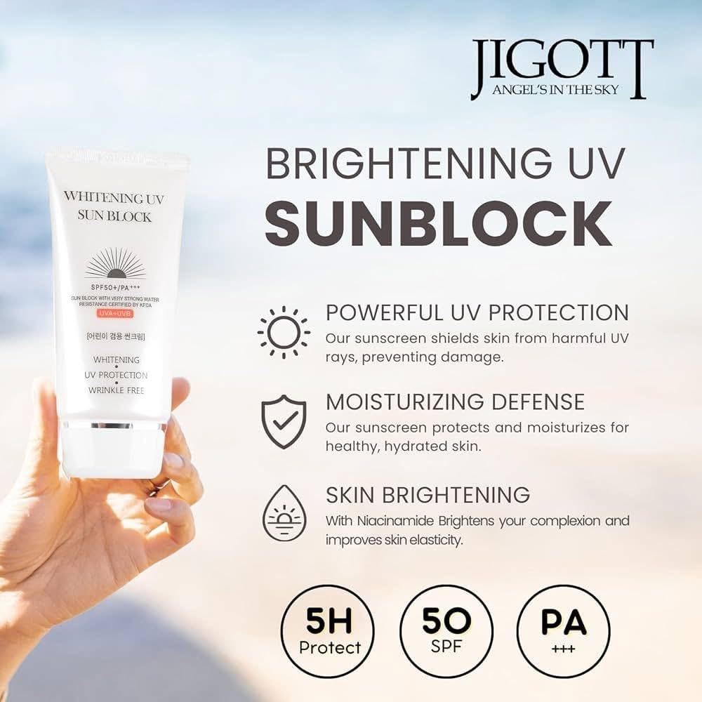 Say goodbye to sun damage and hello to radiant, protected skin! The Jigott Whitening UV Sun Block is your essential companion for every sunny adventure, offering powerful, multi-functional skincare in one tube.