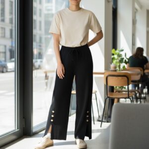 - Structured Waist Detail: A smooth, tailored yoke sits comfortably at the waist, providing a neat, non-bulky fit through the hip area. This structured detail is visually slimming and provides the perfect base for tucking in tops.