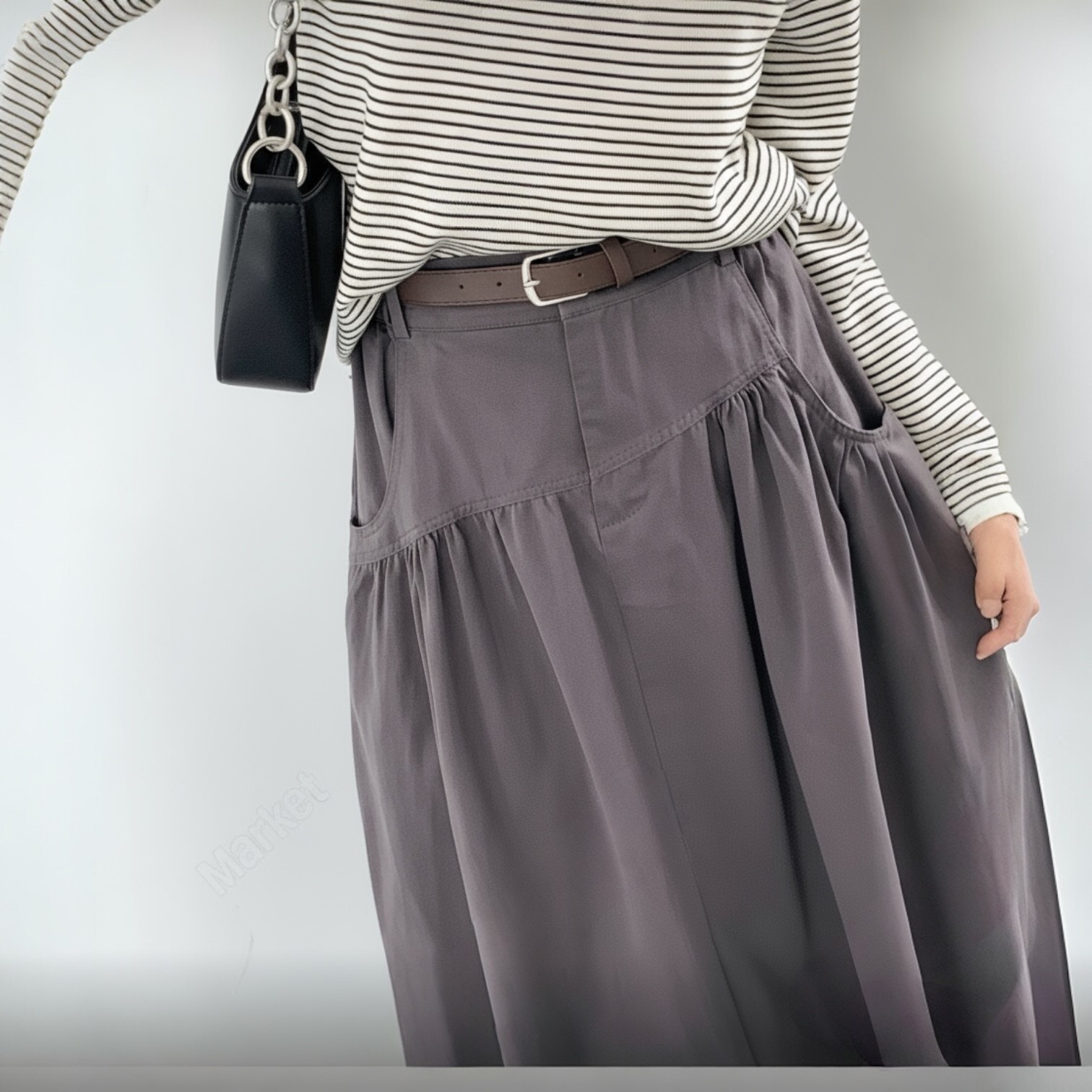 - Functional Front Pockets: Designed with practicality in mind, the skirt features angled, utility-style pockets that are both deep and stylishly integrated.