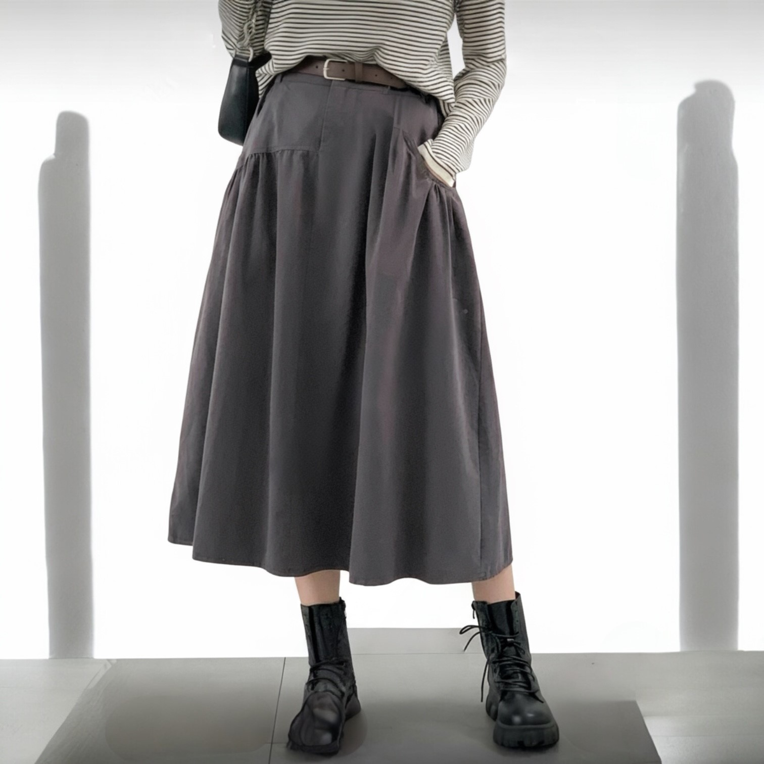 Introducing the Everyday A-Line Midi Skirt, a wardrobe anchor that blends casual utility with an effortlessly flattering silhouette. This isn’t just a skirt—it’s your new go-to piece for polished comfort, perfect for weekdays and weekends alike.