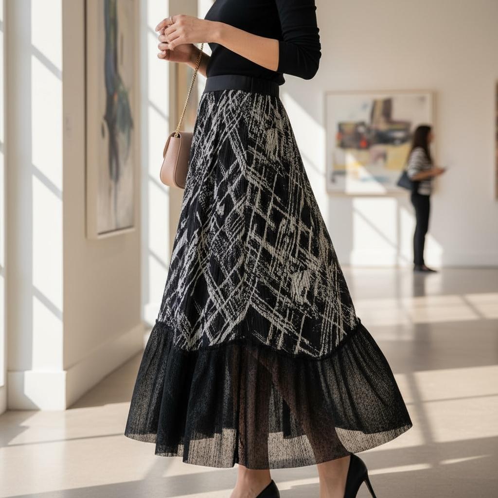 - Dramatic Tulle Hem: Finished with a romantic, sheer black mesh ruffle at the bottom, adding unexpected texture and irresistible volume to the silhouette.