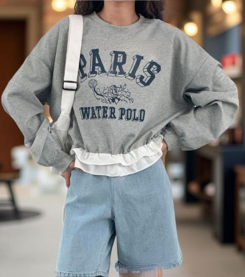 Get ready to elevate your casual wardrobe with the “PARIS WATER POLO” Ruffle Hem Sweatshirt. This unique piece perfectly blends sporty, vintage graphic appeal with a sweet, feminine finish, making it an instant favorite for effortless style.