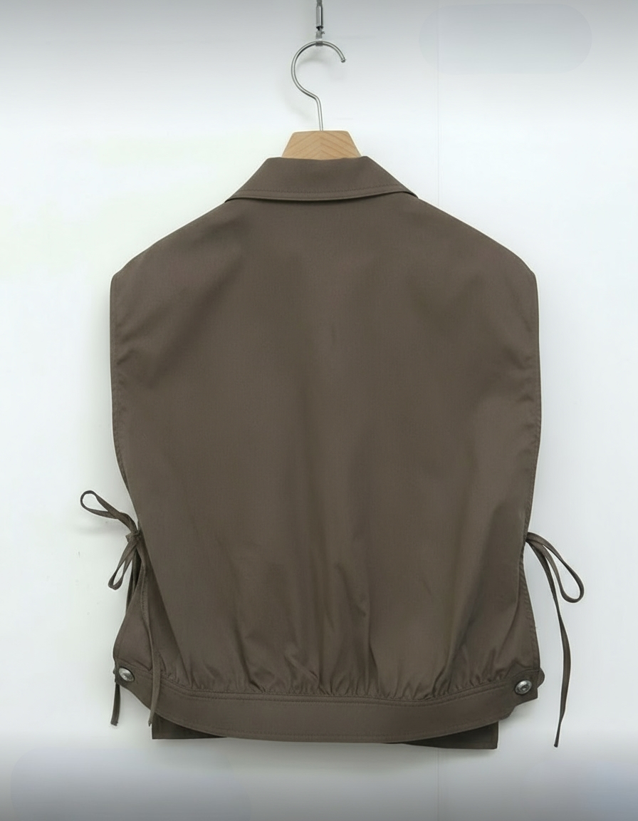 Add a touch of contemporary flair and street-style edge to any outfit with our Cropped Utility Tie-Side Vest. This unique sleeveless shirt-jacket is the perfect layering piece to transform your basic tee-and-jeans look into a fashion statement.