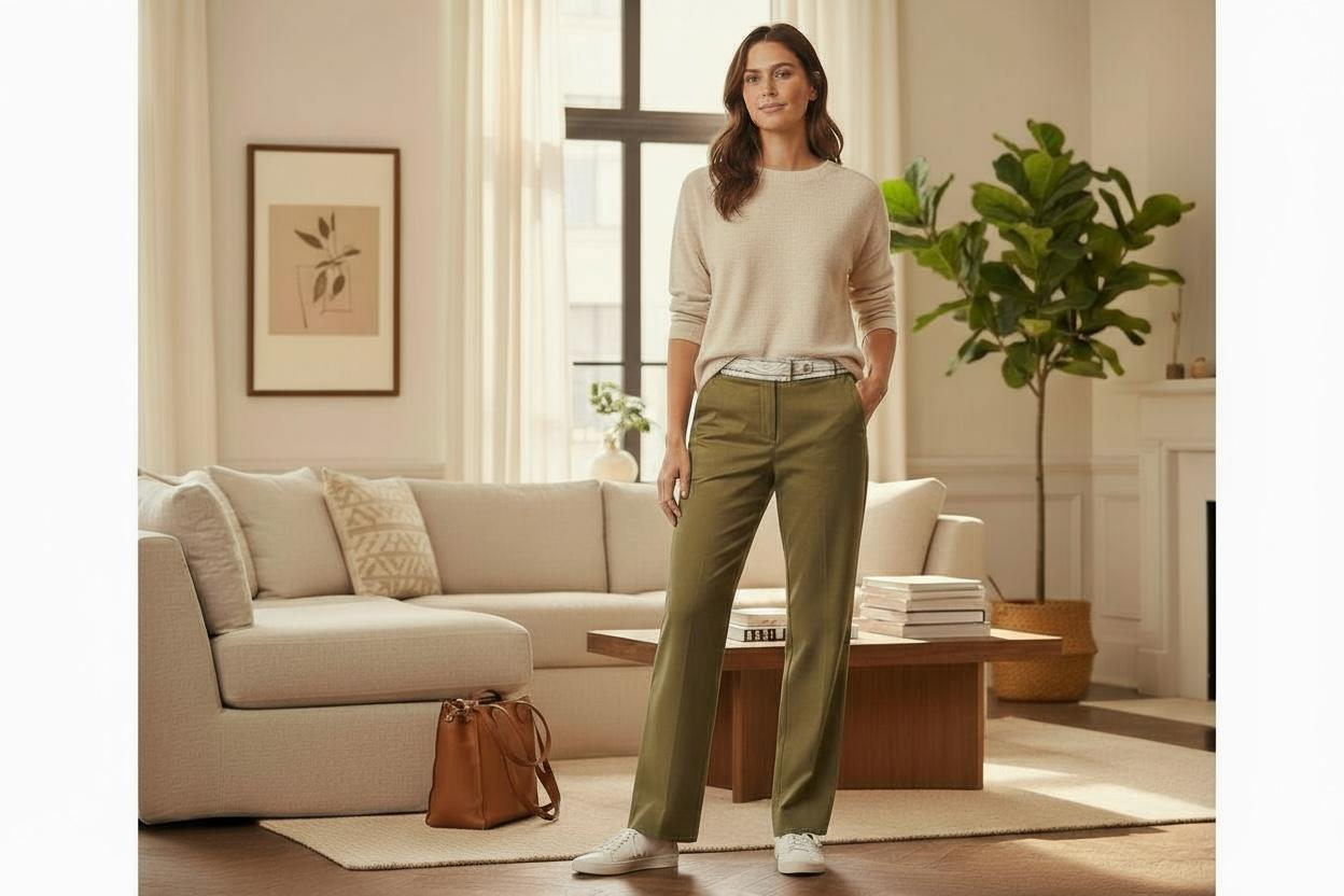 1. Polished Business Casual: Tuck in a crisp white linen or cotton button-down shirt (as shown in one of the images) and add a light-colored belt (like cream or beige). Finish with nude or tan leather loafers and a simple watch for an effortless look that is smart, comfortable, and perfect for the office or meetings.