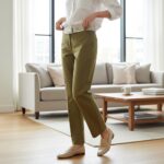Meet your new essential bottom: the Tailored Traveler Trousers. Crafted in a sophisticated, versatile olive green, these pants offer the perfect balance of streamlined professionalism and all-day comfort. They have the polished look of a work pant but the easy-wearing feel of a quality chino, making them an indispensable foundation for any modern wardrobe.