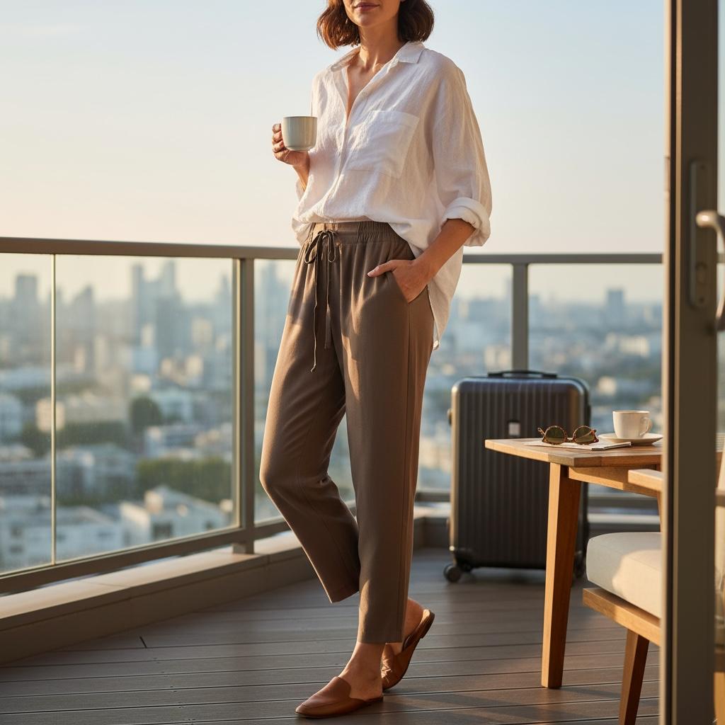 • Lightweight & Breathable Fabric: Crafted from a premium, soft-touch fabric that offers exceptional breathability and a comfortable drape, perfect for all-day wear and travel.