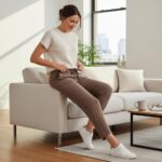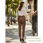 Discover your new wardrobe essential: the Urban Nomad Tapered Trousers! These aren’t just pants; they’re your passport to seamless style, designed for the modern woman who navigates cityscapes and embraces relaxed luxury. Imagine the sensation of lightweight, breathable fabric moving with you, perfectly blending sophisticated tailoring with unparalleled comfort. Drenched in a versatile, rich cocoa brown hue, these trousers effortlessly transition from sun-drenched mornings on your balcony to chic strolls through bustling streets.