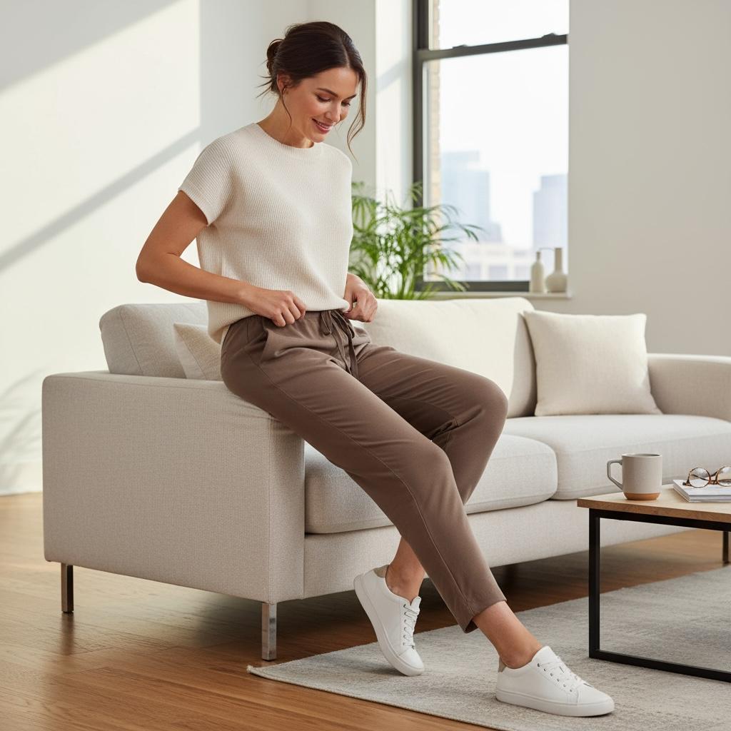 • Footwear: Clean white sneakers (as seen in Image 3) or elegant flat leather mules (as seen in Image 4).